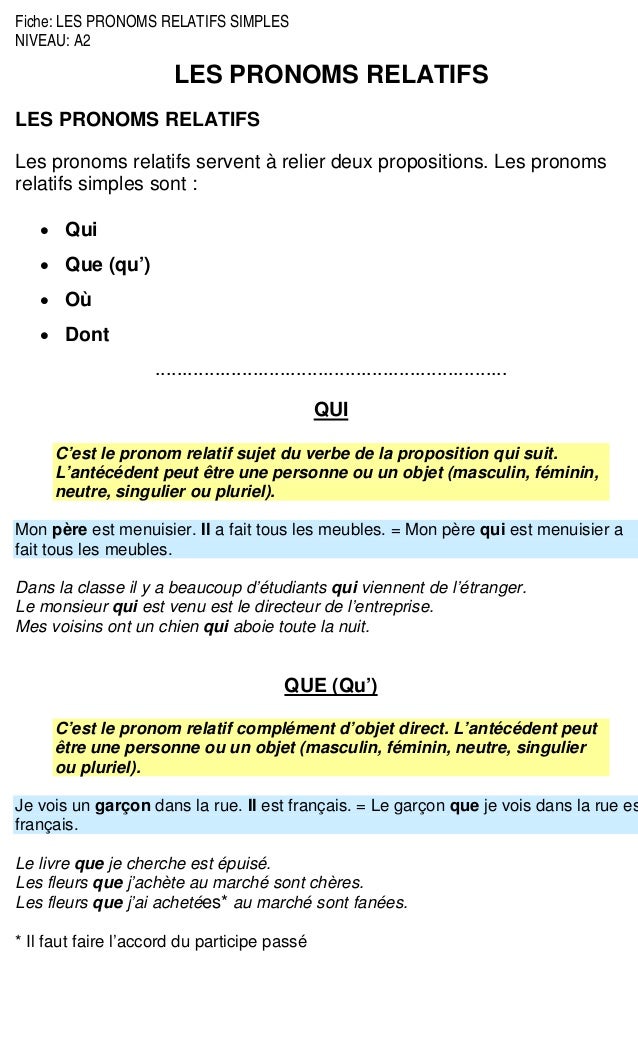 Ce verbe reçoit donc la marque de la deuxième. Puis entoure le pronom relatif et. Dans ces cas, moins fréquents, qui remplace le pronom un ou une.